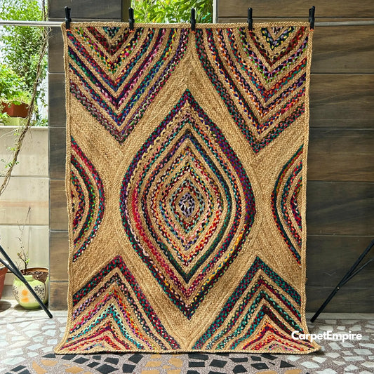 Handwoven Boho Rug – Multicolor & Jute Chic Rug
