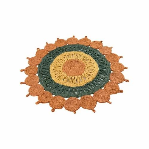 Orange, Green & Yellow Hand-Braided Jute Round Rug